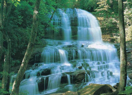 in the foothills of Western North Carolina, Pearson’s Falls descends