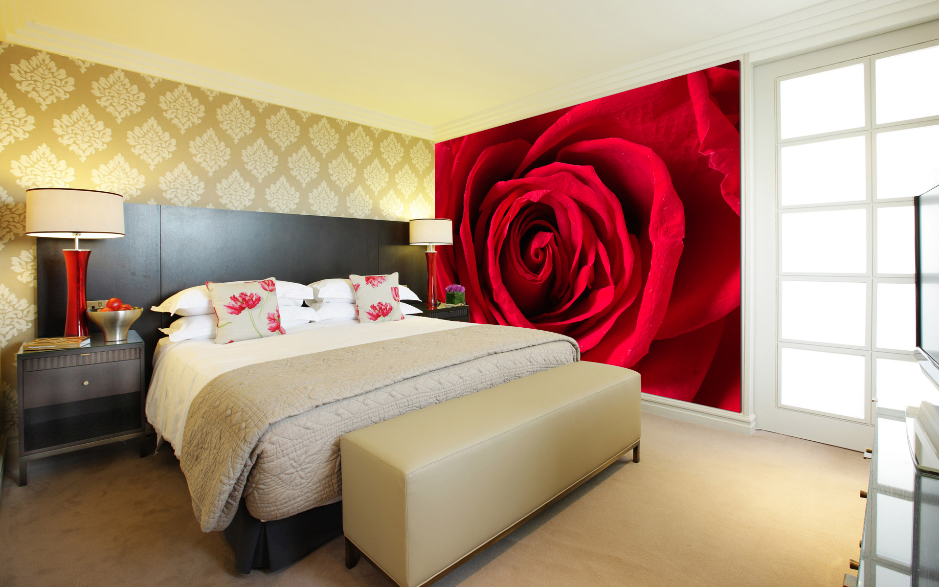 One single large red rose is the focal point