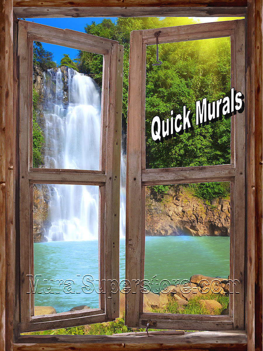 Waterfall Cabin Window Peel & Stick (1 piece) Instant Window™ Wall Mural